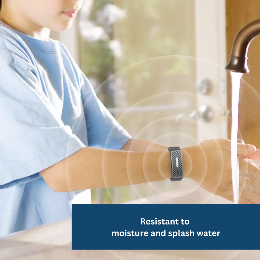 With 360° ultrasound waves, the bracelet keeps mosquitoes away, free from chemical ingredients.