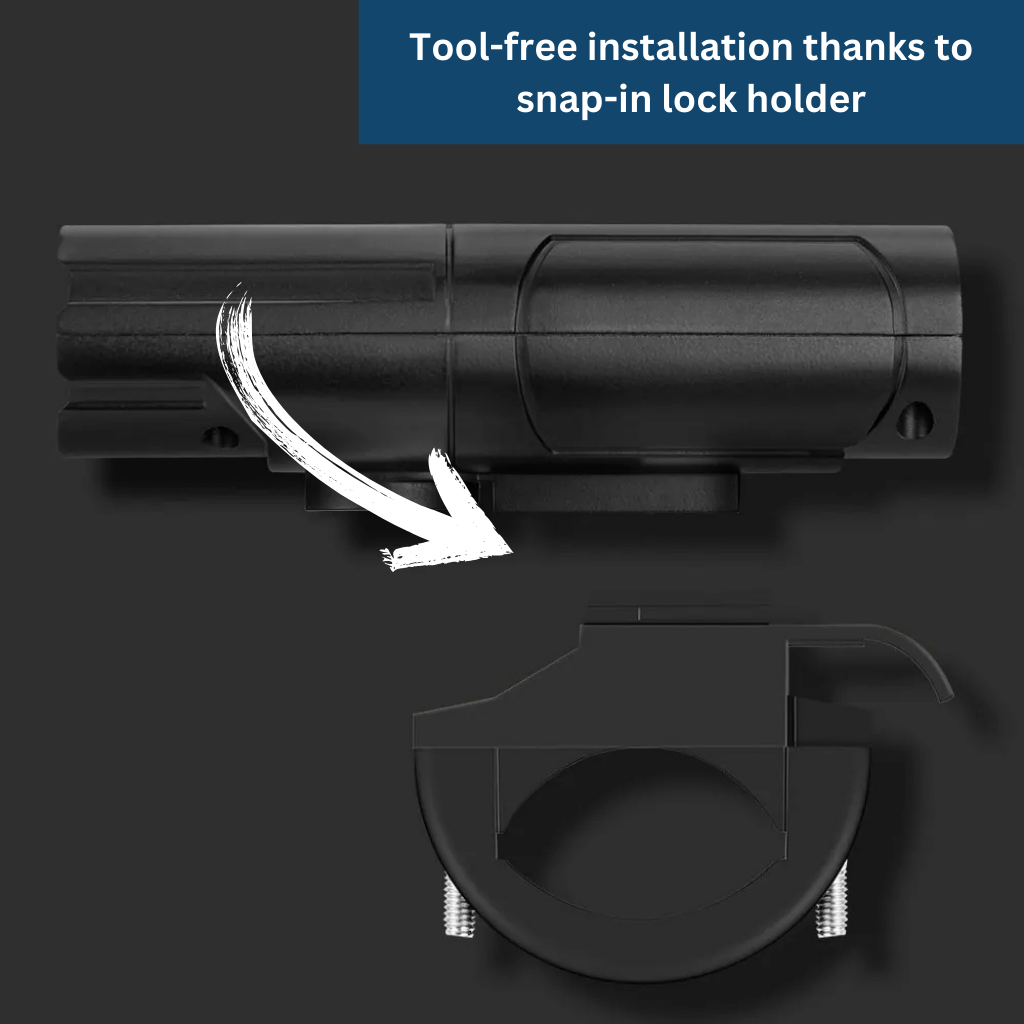 The Lumo Front Light provides extremely bright illumination with a range of up to 300 meters.