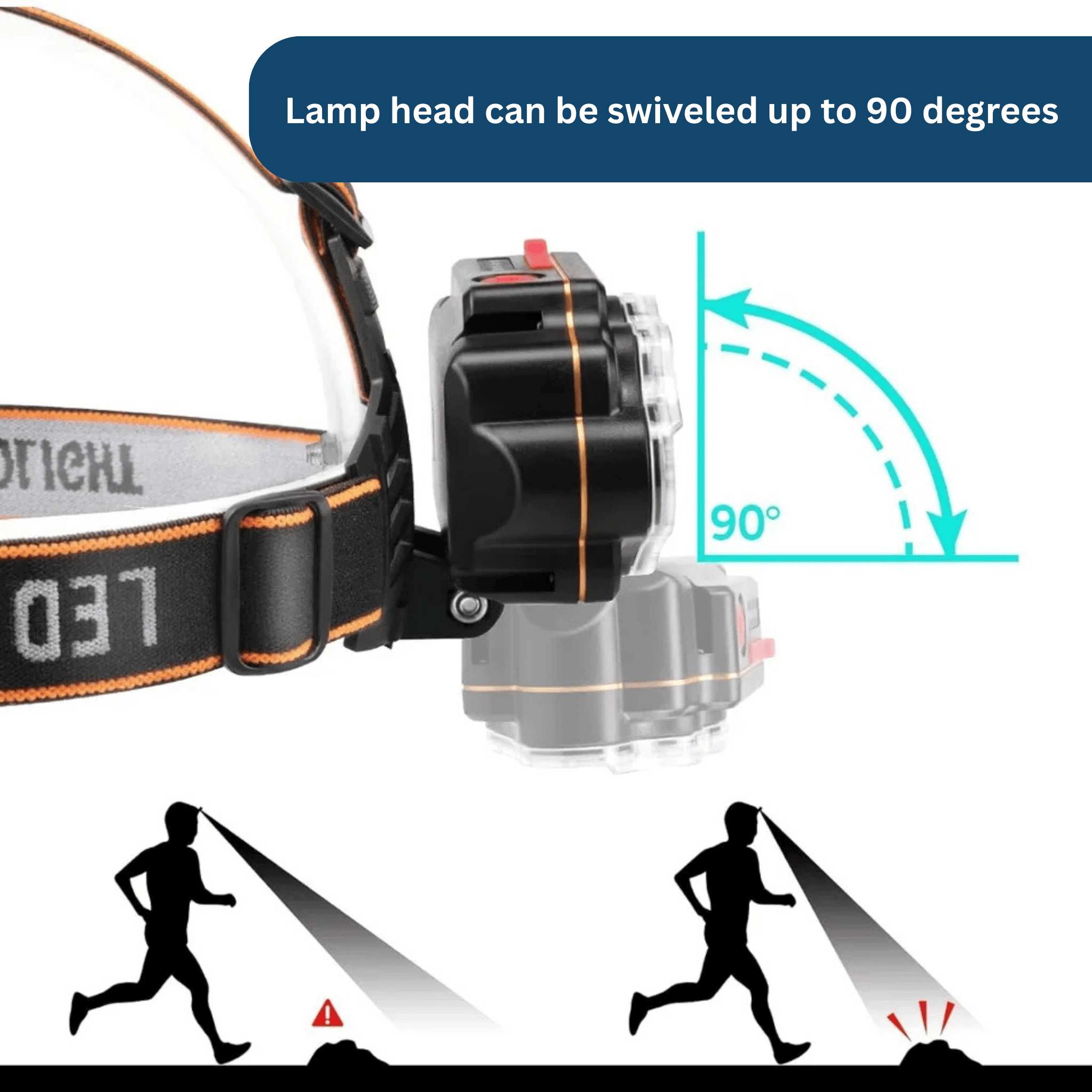 The lamp head can be tilted up to 90 degrees, allowing you to aim the beam precisely.