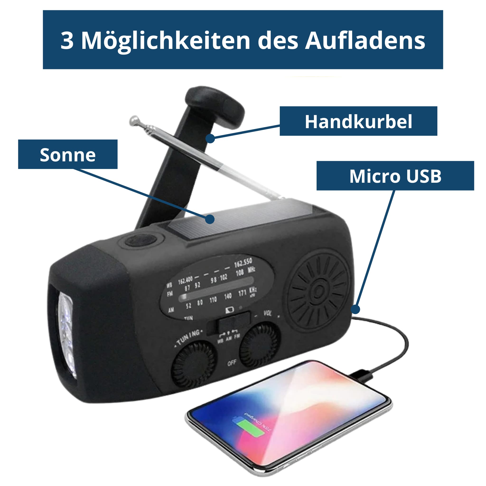 „Ein richtig tolles Gerät. Schön klein und handlich. Sehr helle Taschenlampe. Guter Empfang. Und dass man es mit Solar oder Kurbel aufladen kann, ist das beste! Absolute Empfehlung für jeden Haushalt!“