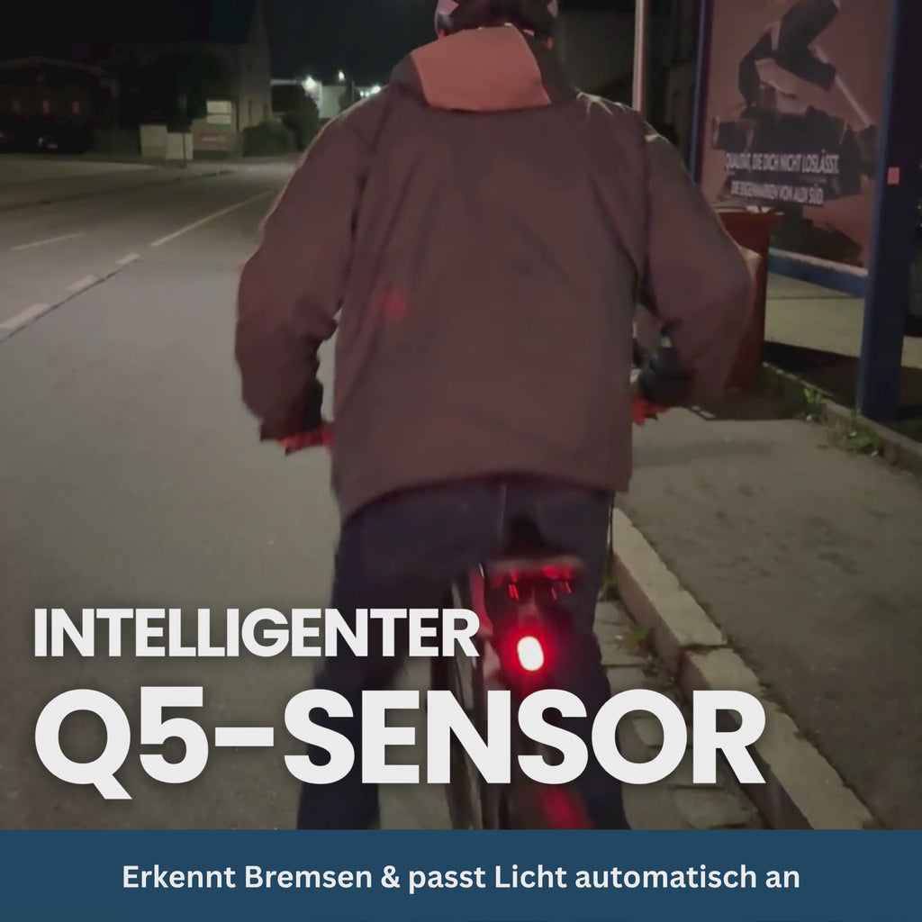 The highly intelligent Q5 sensor immediately detects when you're braking while cycling and activates the brake light of the Smartlight.