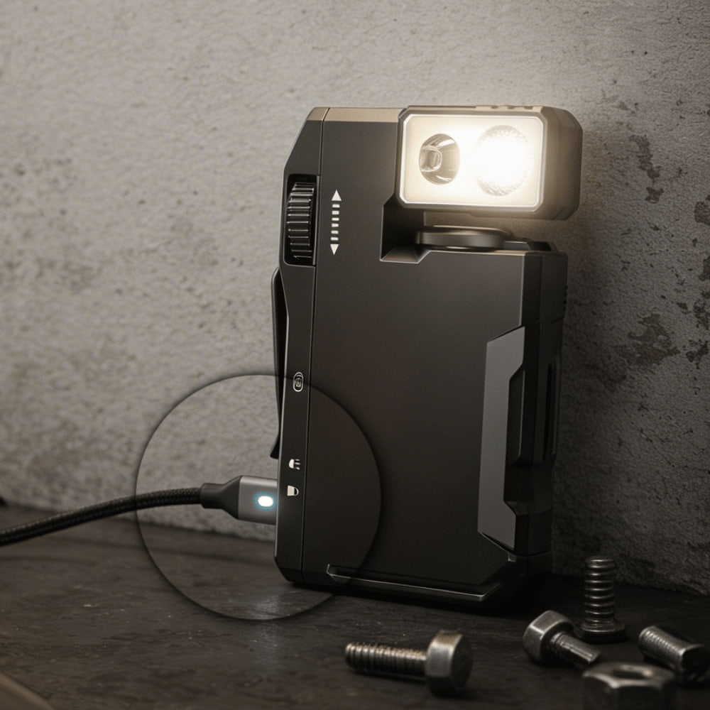 The flashlight features Type-C fast charging and a battery indicator, giving you full control over energy at all times.